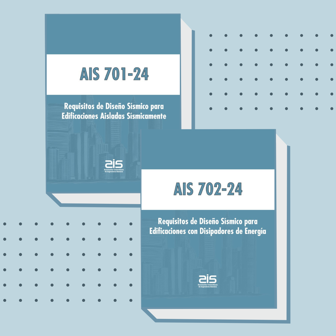 - AIS 701-24 – Requisitos de diseño sísmico para edificaciones aisladas sísmicamente: Considerando que el Reglamento NSR-10 permite el empleo de sistemas de aislamiento, y reconociendo que en el país la mayoría de su población y por ende la infraestructura se encuentra en zona de amenaza sísmica alta e intermedia, adicionalmente, en Colombia, hacia el año 2017, se registraba un inventario de aproximadamente de 35 estructuras aisladas, incluyendo puentes y edificios, esto de acuerdo a consultas realizadas por el Comité AIS 700. Hoy en día, este número de estructuras ha crecido significativamente. Esta adopción refleja una creciente conciencia en la ingeniería del país, sobre las ventajas inherentes del aislamiento sísmico para mejorar la funcionalidad y resiliencia de la infraestructura, aportando beneficios adicionales para la protección de la vida humana frente a la amenaza de eventos sísmicos.