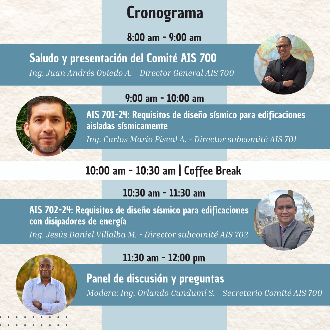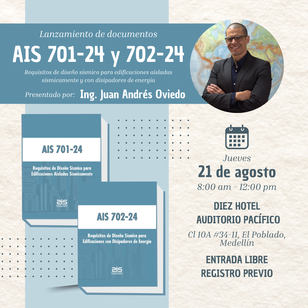 Juan Andrés Oviedo Amézquita es ingeniero Civil egresado de la Universidad EIA, en 2001, con especialización en Estructuras en la Universidad Nacional Sede Medellín en 2004, posgrado en Ingeniería Sísmica y Mitigación de Desastres del Instituto Internacional de Sismología e Ingeniería Sísmica (IISEE) en Tsukuba – Japón en 2005, Magister (2008) y Doctorado (2011) en Ingeniería Sísmica y Estructural de la Universidad de Hokkaido en Japón. Profesor de cátedra e investigador en el área de ingeniería Estructural en la Universidad EIA. Fundador y CEO de la empresa F’C Control y Diseño de Estructuras SAS. Presidente de la Asociación Colombiana de Ingeniería Sísmica (AIS), Presidente del Grupo Colombiano de la Asociación Internacional de Puentes e Ingeniería Estructural (IABSE), Vicepresidente de la Seccional Colombiana de la Sociedad Americana de Ingenieros Civiles (ASCE), Expresidente de la Asociación de Ingenieros Estructurales de Antioquia (AIE), y Director del Comité AIS-700: Aislamiento Sísmico y Disipación de Energía, de la AIS.